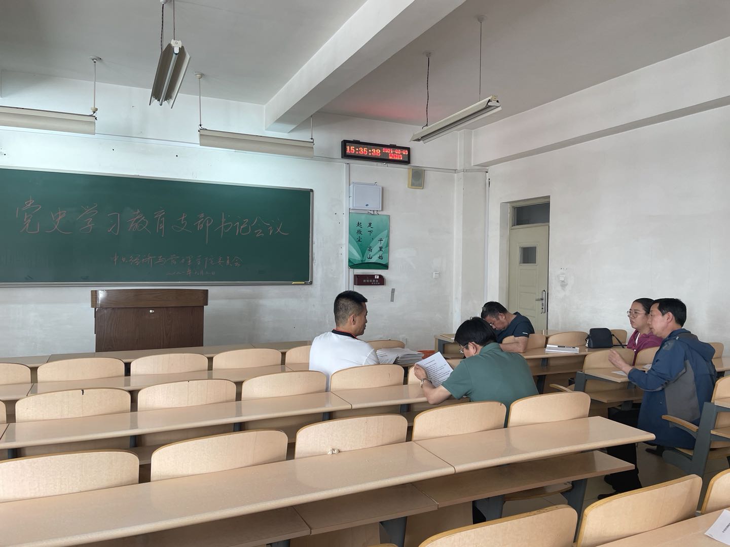 2021年6月3日,公司党委书记王玉泉在春晖学堂E204组织召开党史学习教育支部书记会议。学院在校的各支部书记参加了此次会议。王书记一一了解了各支部的学习进度和接下来的学习安排,组织委员刘希裕传达了公司党史学习教育督查的情况。会议要求各支部确保学习进度,严格按照学校和督导组的要求高标准、高质量的推进党史学习教育。