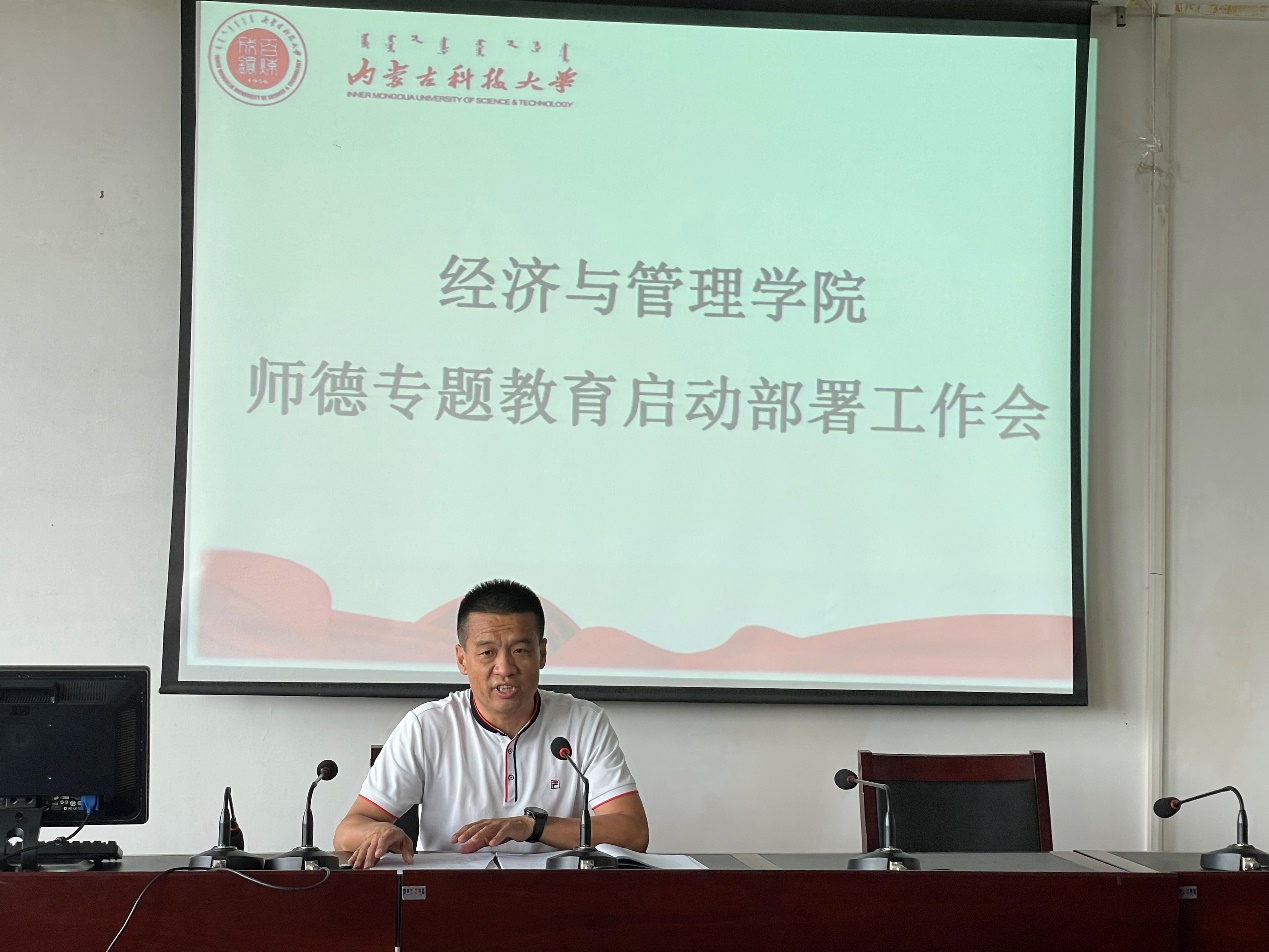 2021628日上午,公司党委在腾飞楼A413召开师德专题教育启动部署工作会。党委书记王玉泉主持会议并讲话,学院在校教职工参加了此次会议。学院严格落实《内蒙古自治区教育厅关于在全区教育系统开展师德专题教育的通知》(内教教师函[2021]44号)通知精神,在全院范围内开展师德专题教育。