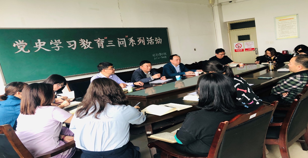 调研活动围绕着党史学习情况、学校各方面工作存在的问题、纪检监察工作存在的问题等三个主题展开。学院纪检委员、教工第一党支部书记闫宝成汇报了党史学习情况。教师们针对人才引进、实验室建设、教学任务、员工就业等方面,提出了“急难愁盼”的具体问题,并围绕着教师评价体系、岗位聘任、年终绩效考核、学校日常管理等方面展开了讨论,为学校和学院高质量发展建言献策。