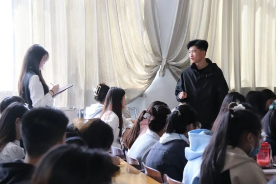 在指导考研问题方面,郭楠从英语、数学、逻辑、专业课、政治五个科目分别分享了自己的学习经验和复习技巧,又从地理位置和专业匹配度两个角度引导同学们对择校的选择,提出了要学会“适当放松、多多交流”来调整心理状态。紧接着王儆上台发言,她介绍了考研的概况,指出了选择考研院校和报考专业的思考方向,最后分享了自己的考研备考计划并预祝同学们考研顺利。