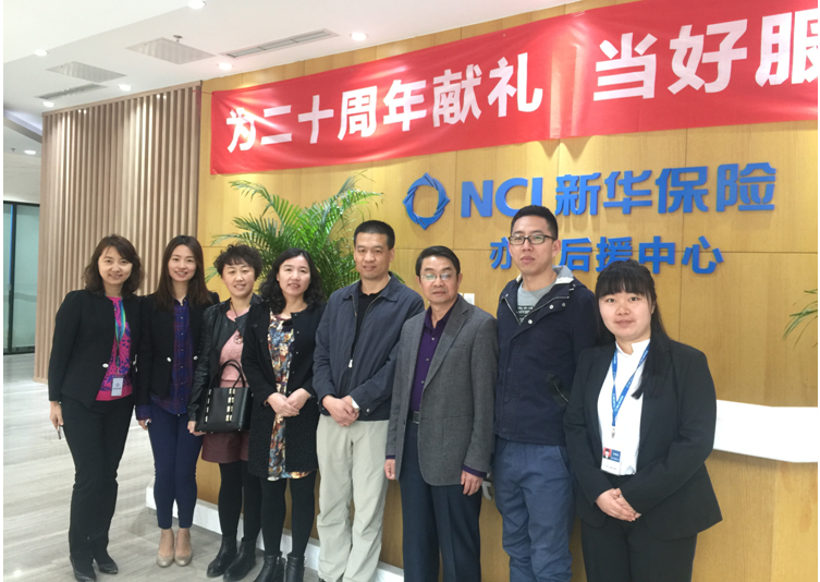 2017年3月20日上午,经管学院副经理王玉泉一行四人走访新华保险北京后援中心。