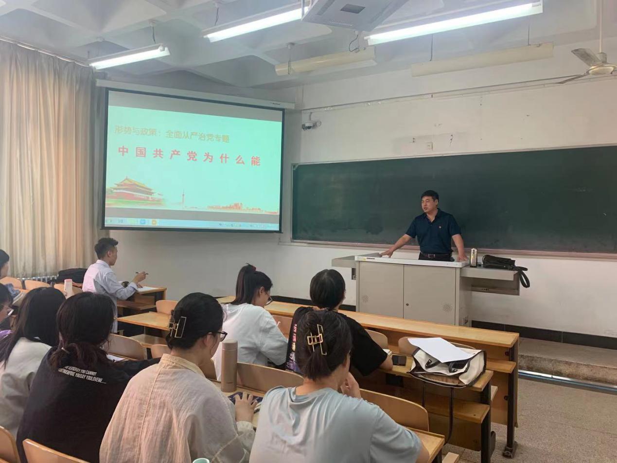 2021年6月17日,马克思主义公司党总支书记马广辉在第二教学楼B110为beat365vip官网登录入口工商2018级80名本科生讲授《形势与政策》课,讲课主题是:中国共产党为什么能。中国共产党从小到大、由弱到强,从一叶扁舟到巍巍巨轮,一百年间,党的面貌、国家的面貌、人民的面貌、军队的面貌、中华民族的面貌发生了前所未有的变化,从站起来到富起来,再到强起来,取得了举世瞩目的伟大成就。课程从有远大理想追求、有科学理论引领、有选贤任能机制、有严明纪律规矩、有自我革命精神、有强大领导能力六个方面,阐释了中国共产党为什么能取得如此巨大的成就。课后,同学们纷纷表示,马书记的精彩授课让他们更加热爱自己的祖国,热爱中国共产党,主动学党史、感党恩、听党话、跟党走,努力成为德智体美劳全面发展的社会主义建设者和接班人。