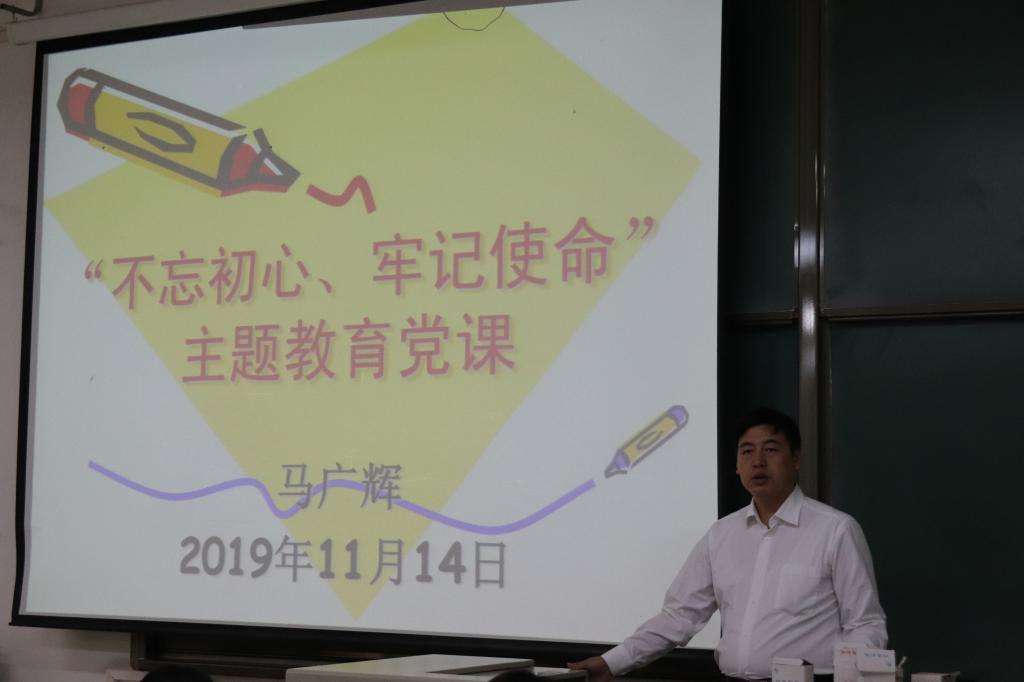 按照公司党委主题教育统一安排部署,2019年11月14日,公司党总支书记马广辉同志在逸夫楼G101讲“不忘初心、牢记使命”教育专题党课。