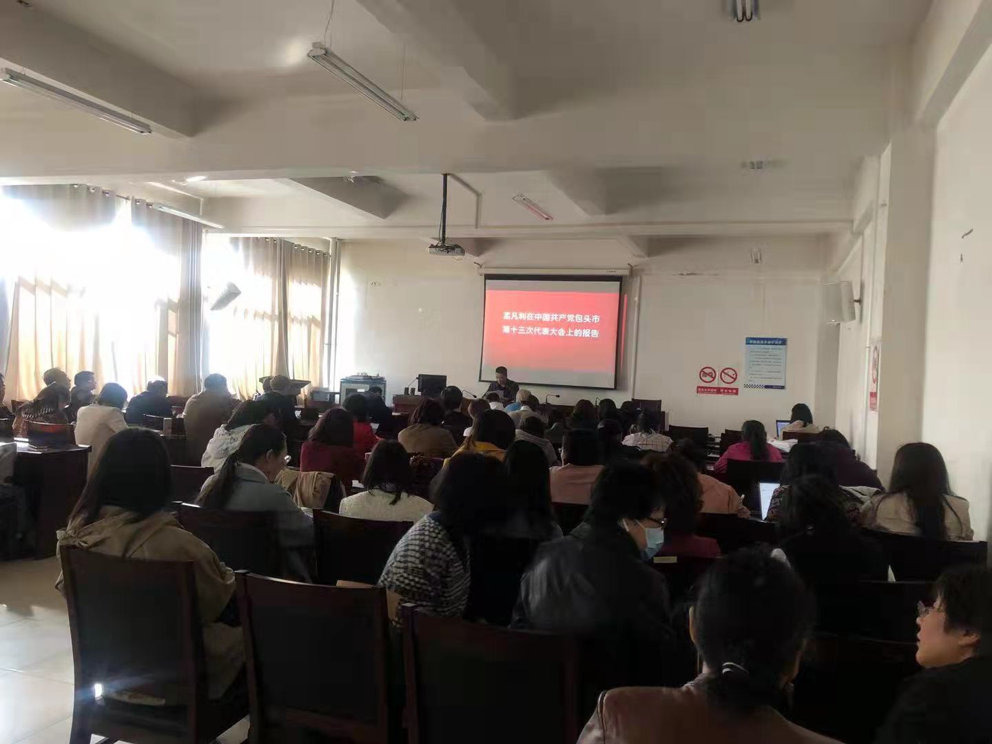 会议要求全体教职工自觉用会议精神武装头脑、指导实践、推动工作,把学好、弄通、做实党代会精神当作当前重要的政治任务,不忘初心、牢记使命,感恩奋进、拼搏赶超,把思想和行动统一到包头市第十三次党代会精神上来,为建设繁荣昌盛、欣欣向荣的新时代中国特色社会主义现代化新包头贡献教学力量。