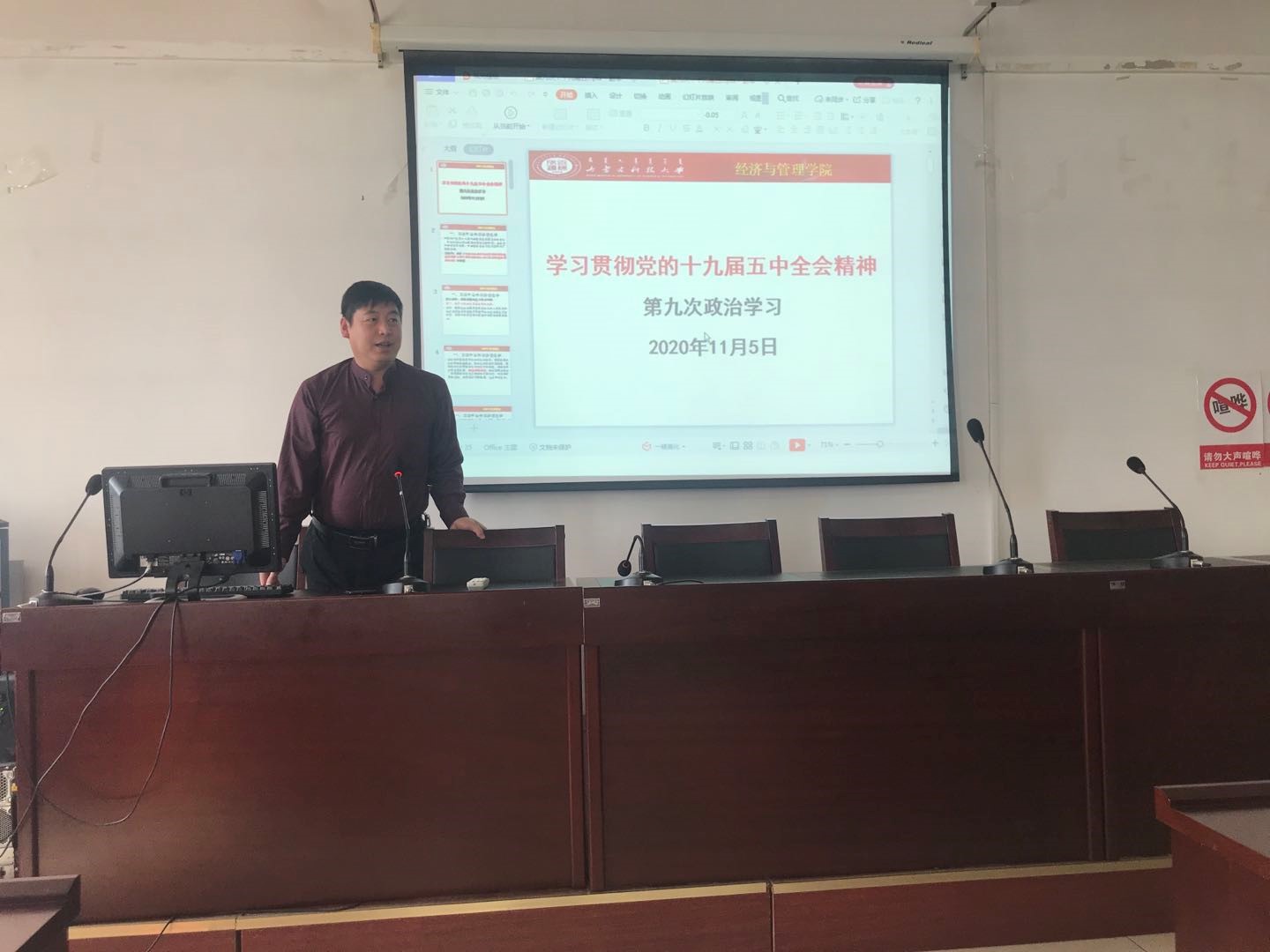 2020年11月5日,公司党总支组织了全体教师政治学习。党总支书记马广辉做了题为《学习贯彻党的十九届五中全会精神》的专题讲座。重点学习了习近平总书记的讲话:关于《中共中央关于制定国民经济和社会发展第十四个五年规划和二〇三五年远景目标的建议》的说明。