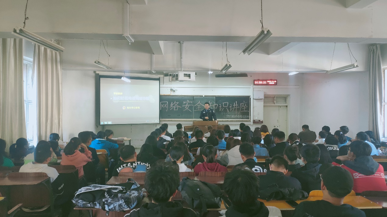 安全与我们的生活息息相关,2020级新生入学后,面临着各种各样的网络诱惑与陷阱,为使新生形成良好的网络使用习惯,树立良好的安全防范意识,拥有更加美好的校园生活,10月22日下午,公司在主教D203举行了以校园防范电信网络诈骗为主题的安全知识培训讲座。此次讲座我们有幸请到了包头市公安局刘志强警官进行现场教学。本次讲座旨在增强新生的安全意识,进一步引导员工树立维护权益、提高防范诈骗的意识。