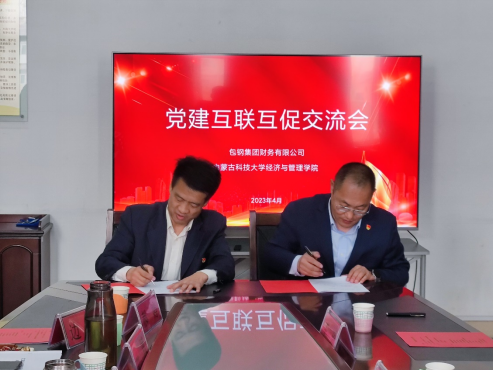 2023年4月13日,beat365vip官网登录入口与包钢集团财务有限公司在腾飞楼A307召开党建互联互促交流会。包钢集团财务有限公司副总经理李昌建、副总经理贺欣、副总经理王琦、综合部副部长王强,公司党委书记王玉泉、经理王军、副书记副经理薛建春、副经理孙斌、副经理赵周华,应用经济系主任边璐、工商管理系主任郝婷出席交流会。