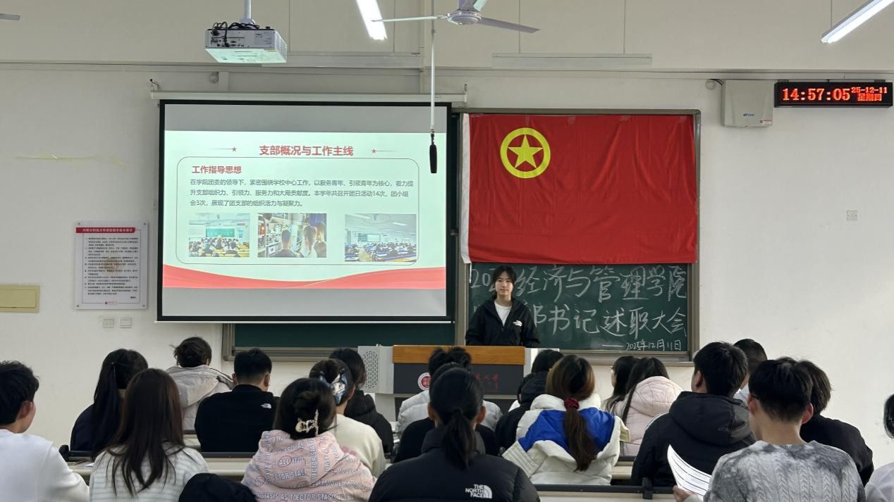 各团支书以现场讲演的方式开展述职汇报,内容聚焦团支部基层团务、组织建设、实践育人及成长服务等方面,同时对团员集体学习开展情况、团员实践能力、所获荣誉及特色活动等进行了重点说明。此外,各团支部书记还深入剖析工作中存在的问题与难点,分享工作心得与总结。述职结束后,由张雪薇老师进行总结并提出对未来工作的要求。