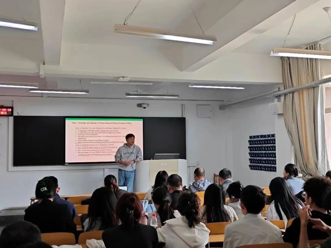2025年9月19日,复旦大学孙谦教授应邀来到beat365vip官网登录入口,就“卖空限制与股票收益预测”与师生们进行座谈交流和学术讲座,为师生们带来了一场精彩的学术盛宴。 讲座中,孙谦教授并未局限于理论阐述,而是结合具体研究案例,深入浅出地讲解了卖空限制对股票市场的影响。他通过实际数据和图表,分析了政策实施前后股票价格的变化,指出卖空限制会导致市场信息量减少,从而使短期股价预测能力下降。孙教授的分享为师生们提供了一个“如何从现实政策变化中发掘有价值研究课题”的完整范例 在互动环节,师生们踊跃提问。针对员工论文写作的困惑,孙教授精辟地指出“做研究是创造新知识”,强调了学术创新的本质。边璐老师进一步就量化投资、机器学习应用、机构与个人投资者行为差异等前沿话题,与孙教授进行了深入交流。 本次讲座不仅加深了师生对资本市场微观结构的理解,更是一堂生动的“研究方法论”大师课,为学院的学术研究与人才培养注入了新的动能。